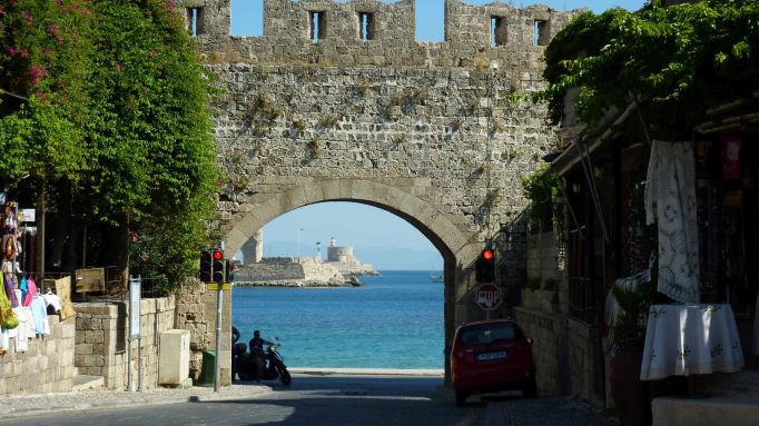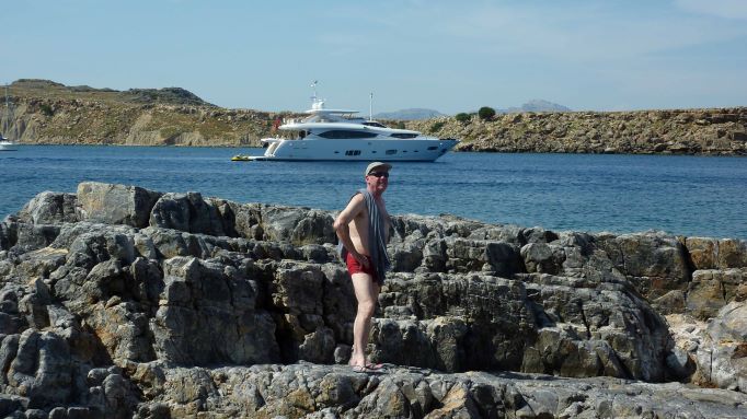 Beim Duschen setzte man das ganze Zimmer unter Wasser. Wir gingen die 300 Meter bis zur Hauptstraße und fuhren wieder Richtung Rhodos.