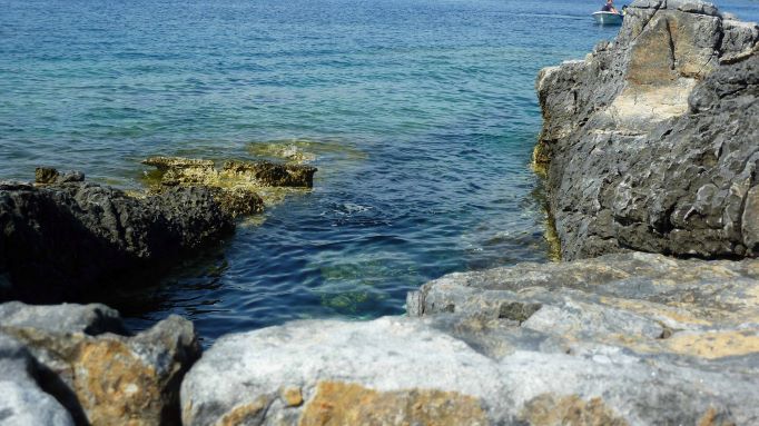 Letztendlich gab uns der Baum keinen Schatten, sondern die Felswand. Ins Wasser zu kommen bedeutete Kletterei, aber das Schwimmerlebnis (Steilwand mit Höhlen), war ein Traum.