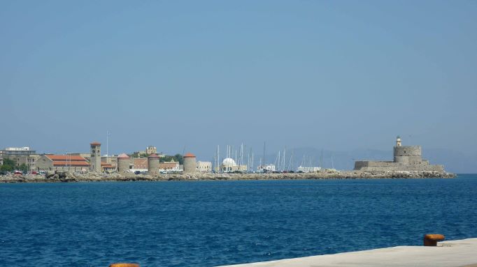 Wir kamen in Rhodos an. Unser Schiff legte neben der Blue Stars 2 an und jetzt merkten wir erst, das die Blue Stars Diagoras doch nicht so groß war. Die Blue Stars 2 war gegenüber der Aida Aura, die im Hafen lag, auch nicht riesig.